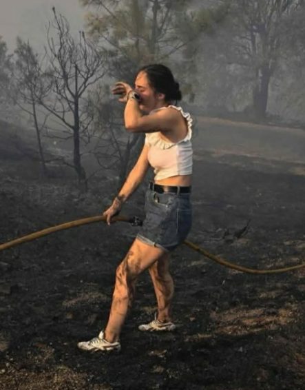 A fotografia está a tornar-se viral em todo o mundo. Surge entre o fogo intenso do incêndio de Larouco (Ourense), a lutar pela sua vida e pela dos seus vizinhos.